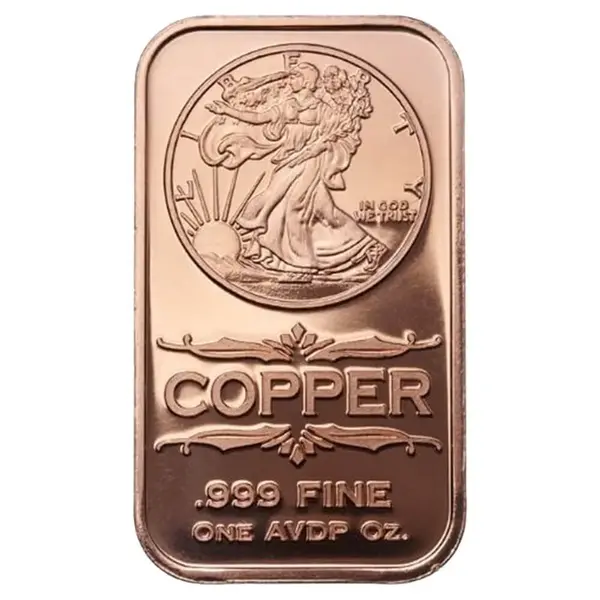 Compare prices online for the 1 oz Walking Liberty Copper Bar at Bullion Hunters and find the best deals from dealers on this classic American-inspired design. Struck from 1 avoirdupois ounce of .999 fine copper, this bar offers a rich, warm finish and sharp detailing, making it a standout addition for collectors and copper enthusiasts.