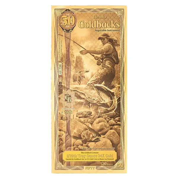 The 50 Idaho Goldback combines meaningful artwork with real gold value, making it a distinctive choice for collectors and investors looking to expand their holdings with innovative fractional gold products.