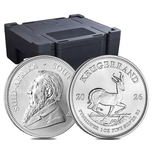 Compare live prices for the Monster Box of 500 – 2026 South Africa 1 oz Silver Krugerrand Coins at Bullion Hunters, your go-to source for finding the best bulk silver deals online. Struck by the world-renowned South African Mint, each coin contains 1 troy ounce of .999 fine silver, combining investment-grade purity with the rich heritage of one of the most iconic bullion series ever created.